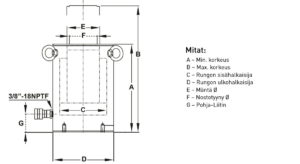 Nimike Isku (mm) Lepokorkeus (mm) Ulkohalkaisija (mm) Öljytilavuus (cc) Männän pinta-ala (cm2) Paino (kg)