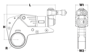 Nimike Avainväli (mm) Momenttialue (Nm) R min. (mm) R max. (mm) L (mm) H (mm) W1 (mm) W2 (mm) Paino (kg)